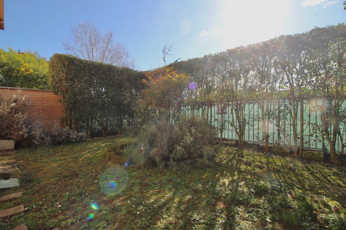 Nel parco di Cascina Commenda, in contesto condominiale riservato e signorile, proponiamo elegante VILLA con ampio giardino privato e box doppio. L'abitazione, con ingresso indipendente, si sviluppa su due livelli abitativi oltre a piano interrato, soppalco e box direttamente collegato alla casa. La zona living al piano terra e' composta da ampio salone affacciato sul portico e alla porzione di giardino piu' grande, di oltre 130 mq. La cucina, comodamente abitabile, si affaccia sul secondo giardino di circa 45 mq. Completa la zona giorno un bagno finestrato con spazio adibito a lavanderia. Al primo piano, si sviluppa la zona notte con due ampie camere da letto e uno studio open-space con possibilita' di convertirlo a terza camera, doppi servizi e balcone. Pavimentazione in legno di bambu' massello. Una comoda scala in legno conduce al soppalco a sbalzo sullo studio e illuminato, durante le ore diurne, da tre lucernari motorizzati e oscurabili. Il piano seminterrato ospita un locale multiuso, da adibire a studio, sala hobby o area giochi, a seconda delle necessita'. Completano la proprieta' un grande box doppio con due basculanti motorizzate, direttamente collegato all'abitazione, e la cantina. Riscaldamento autonomo, impianto di climatizzazione e sistemi di sicurezza. Tripla esposizione a Sud, Est e Nord.